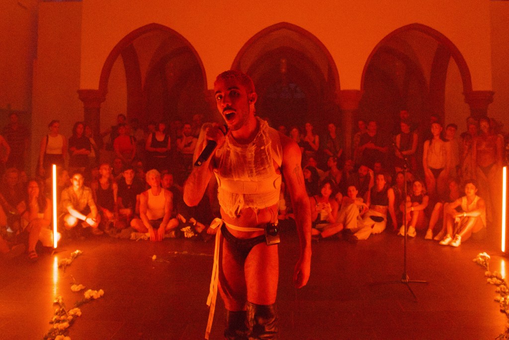 The performance unfolds as an intricate dance, with Andras fearlessly placing their body at the center, navigating the stage and audience room with captivating energy, after smoking the room with sage. This deliberate interplay between vulnerability and empowerment creates an atmosphere where the audience becomes active participants in a narrative rather than mere spectators.“This performance is as much my responsibility as it is yours“ – says Andras, show after show.